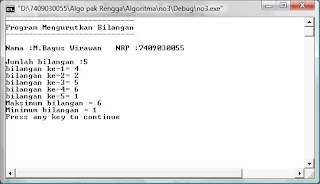 - Masukkan bilangan - bilangan sampai dengan banyaknya jumlah bilangan yang diinputkan.